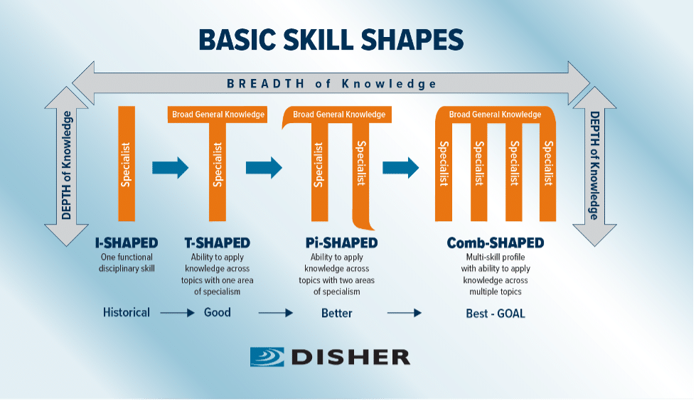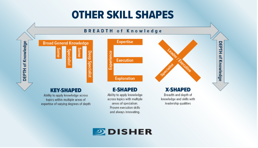 When we talk about a person’s skills, we can categorize them into four primary shapes by measuring them by depth and breadth of knowledge.